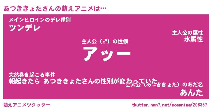 | 男性向けラノベタイトル風あだ名 | 『アツキキョタアートオンライン』 |
