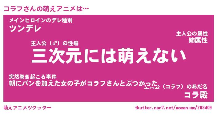 | ヘコむあだ名 | 『コラにー』『豆乳』『コラ太郎』 |