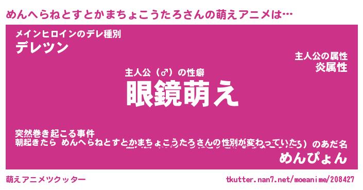 | ヘコむあだ名 | 『めんにー』『酢こんぶ』『めんっぺ』 |