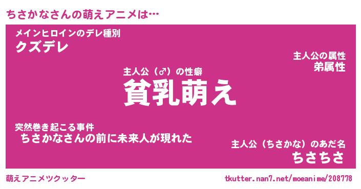 | 男性向けラノベタイトル風あだ名 | 『ちさかなの憂鬱』 |