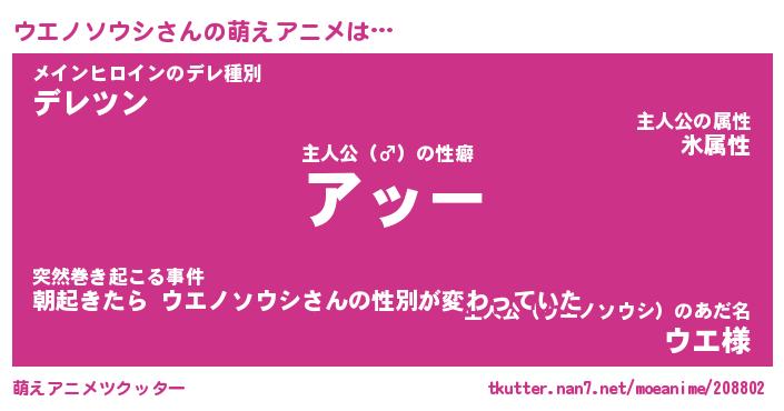 | ポケモン風あだ名 | 『ウエチュウ』『ウエノダネ』 |