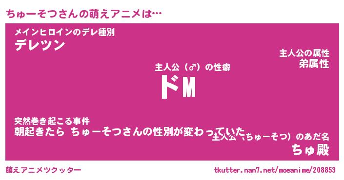 | 男性向けラノベタイトル風あだ名 | 『ちゅーそつの憂鬱』 |