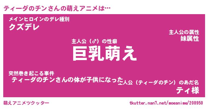 | 男性向けラノベタイトル風あだ名 | 『ティーダのチンの憂鬱』 |