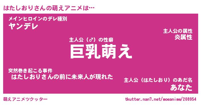 | ヒーロー風カッコイイあだ名 | 『スーパーハタシオリ』『天弓騎士ハタ』 |