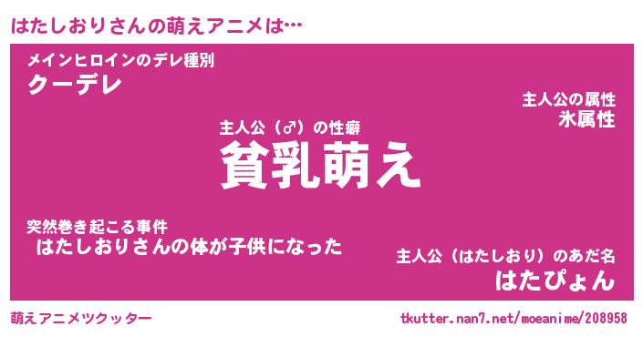 | 男性向けラノベタイトル風あだ名 | 『はたしおりの憂鬱』 |