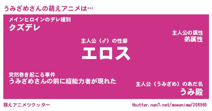 | 意味不明あだ名 | 『ペロリンうみざめ』『永久保存うみざめ』 |