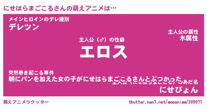 | ツイッター | にせはらまごこるさんのツイッターID『namakemono_kun』 |