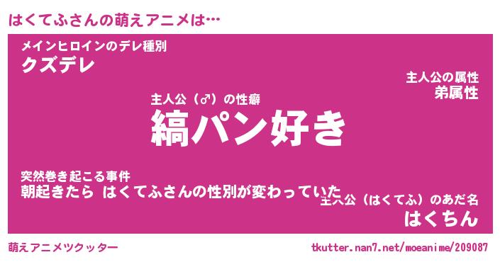 | 男性向けラノベタイトル風あだ名 | 『はくてふの憂鬱』 |