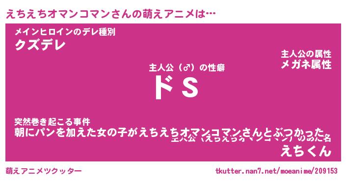 | 男性向けラノベタイトル風あだ名 | 『えちえちオマンコマンの憂鬱』 |