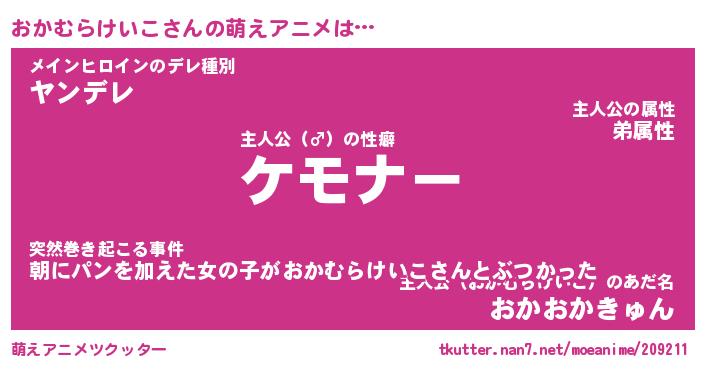 | 肩書あだ名 | 『おかむらけいこ御曹司』 |