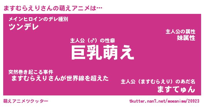 | 男性向けラノベタイトル風あだ名 | 『ますむらえりの憂鬱』 |