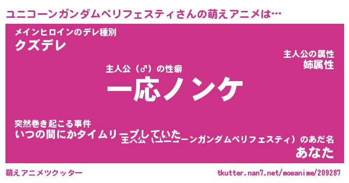 | 意味不明あだ名 | 『ペロリンユニコーンガンダムペリフェスティ』 |