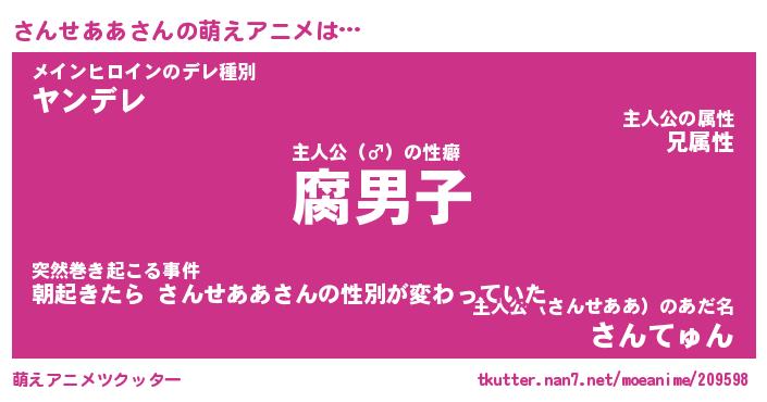 | 男性向けラノベタイトル風あだ名 | 『サンセアアアートオンライン』 |