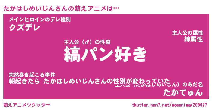 | 男性向けラノベタイトル風あだ名 | 『たかはしめいじんの憂鬱』 |