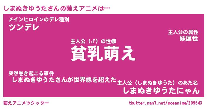 | 男性向けラノベタイトル風あだ名 | 『しまぬきゆうたの憂鬱』 |