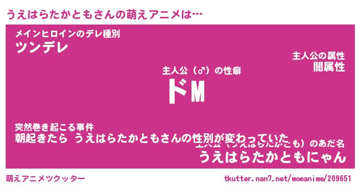 | 女子向けラノベタイトル風あだ名 | 『(仮)うえはらたかとものやんごとなき事情』 |