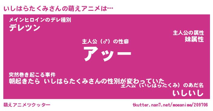 | 肩書あだ名 | 『いしはらたくみ店長』 |