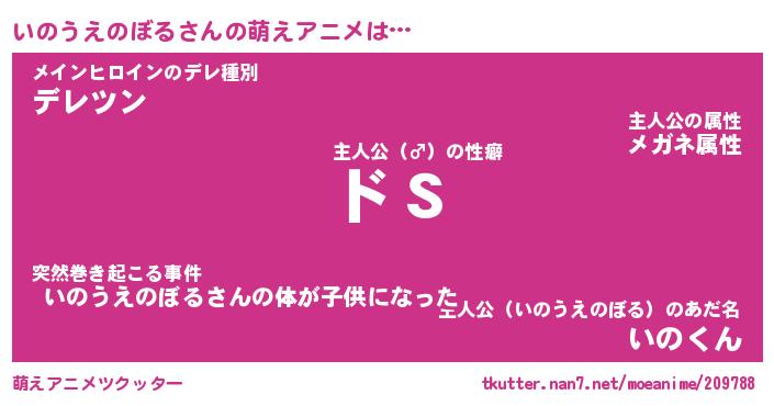 | 男性向けラノベタイトル風あだ名 | 『いのうえのぼるの憂鬱』 |