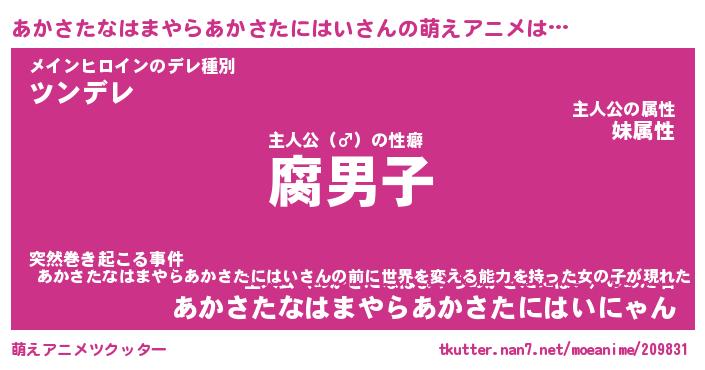| ヘコむあだ名 | 『あかにー』『つくし』『あか太郎』 |
