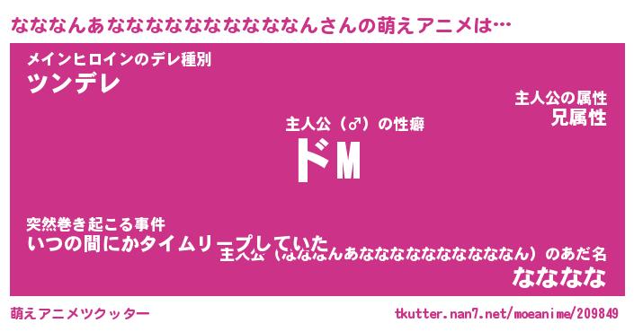 | 男性向けラノベタイトル風あだ名 | 『なななんあななななななななななんの憂鬱』 |