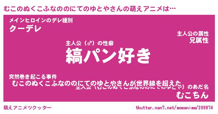 | 男性向けラノベタイトル風あだ名 | 『むこのぬくこふなののにてのゆとやの憂鬱』 |