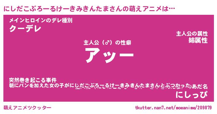 | 女子向けラノベタイトル風あだ名 | 『誰かこのにしだこぶろーるけーきみきんたまを説明してください! ~契約から始まるウェディング~』 |