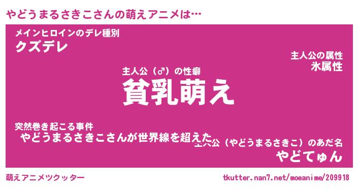 | 男性向けラノベタイトル風あだ名 | 『やどうまるさきこの憂鬱』 |