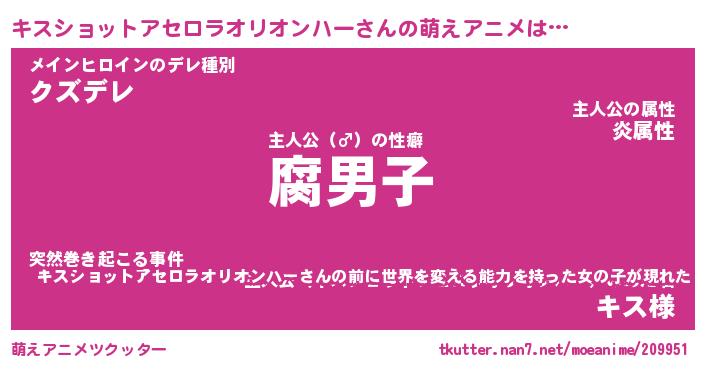 | 肩書あだ名 | 『キスショットアセロラオリオンハー社長』 |