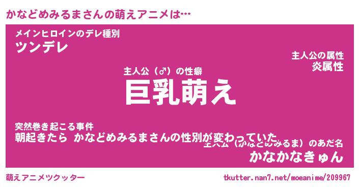 | 男性向けラノベタイトル風あだ名 | 『かなどめみるまの憂鬱』 |