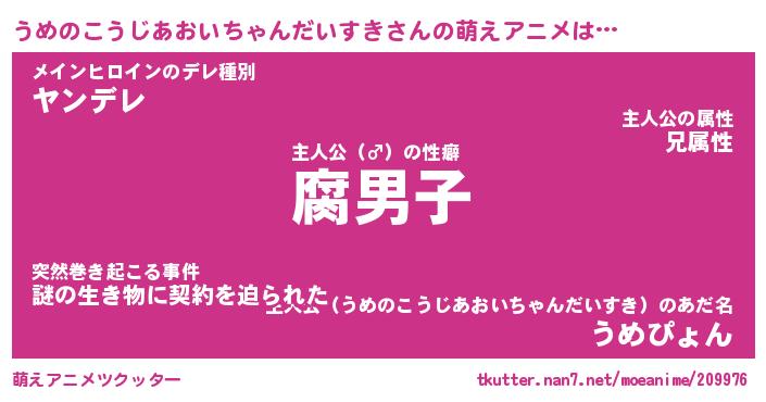 | ヒーロー風カッコイイあだ名 | 『スーパーウメノコウジアオイチャンダイスキ』 |