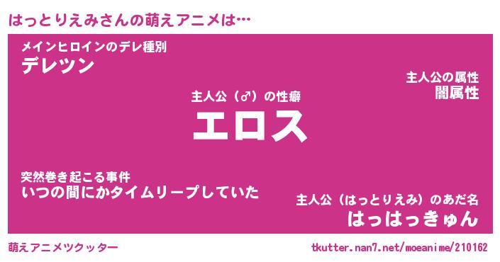 | 女子向けラノベタイトル風あだ名 | 『誰かこのはっとりえみを説明してください! ~契約から始まるウェディング~』 |