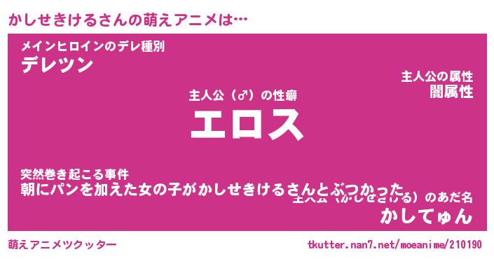| 男性向けラノベタイトル風あだ名 | 『カシセキケルアートオンライン』 |
