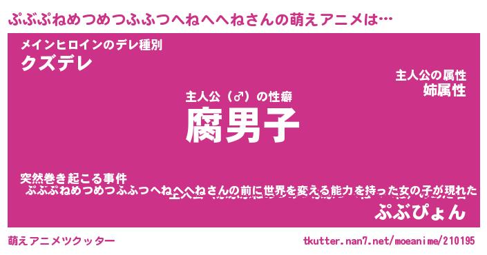 | 男性向けラノベタイトル風あだ名 | 『プブプネメツメツフフツヘネヘヘネアートオンライン』 |