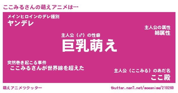 | 男性向けラノベタイトル風あだ名 | 『ここみるの憂鬱』 |