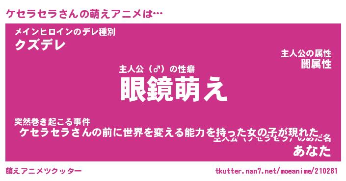 | 男性向けラノベタイトル風あだ名 | 『ケセラセラの憂鬱』 |