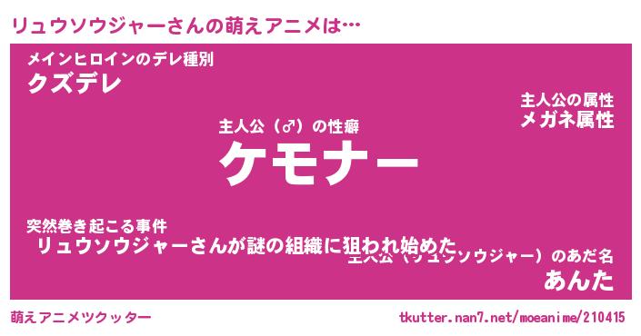 | 男性向けラノベタイトル風あだ名 | 『リュウソウジャーアートオンライン』 |