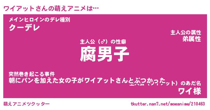 | 料理風あだ名 | 『節約★ワイアットと油揚げの玉子丼』 |