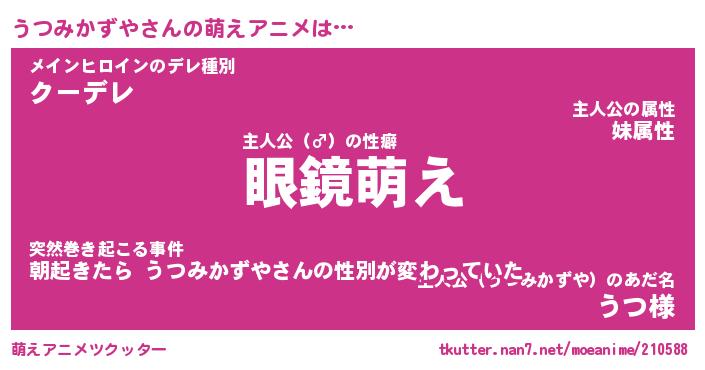 | 男性向けラノベタイトル風あだ名 | 『うつみかずやの憂鬱』 |