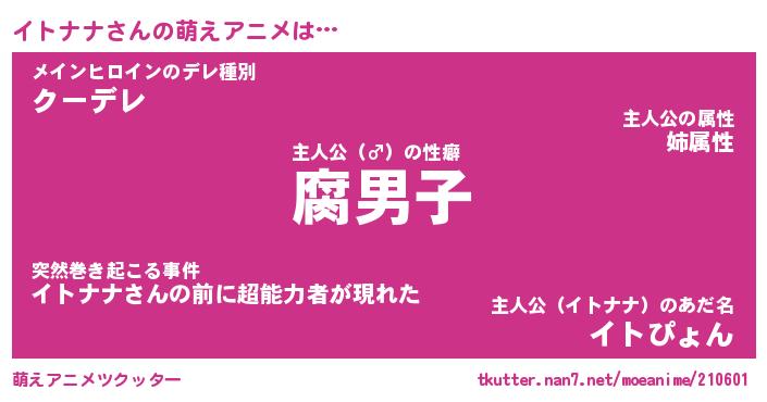 | 料理風あだ名 | 『節約★イトナナと油揚げの玉子丼』 |