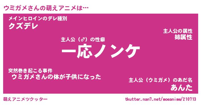 | ファンタジー風あだ名 | 『ウミフェル』『エターナルウミガメー』 |