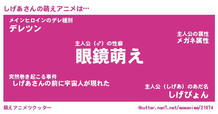 | 男性向けラノベタイトル風あだ名 | 『しげあの憂鬱』 |