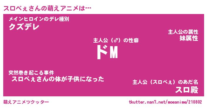 | 男性向けラノベタイトル風あだ名 | 『スロべぇの憂鬱』 |