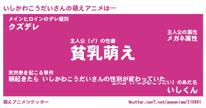 | ヘコむあだ名 | 『いしにゅー』『酢こんぶ』 |
