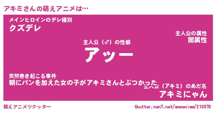 | 男性向けラノベタイトル風あだ名 | 『アキミアートオンライン』 |