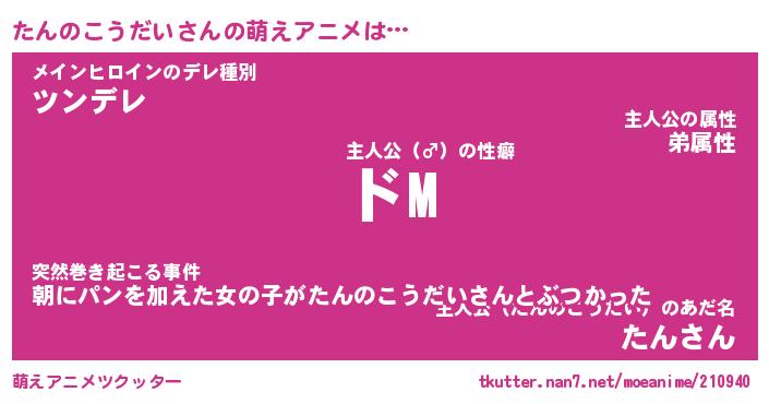 | 男性向けラノベタイトル風あだ名 | 『たんのこうだいの憂鬱』 |