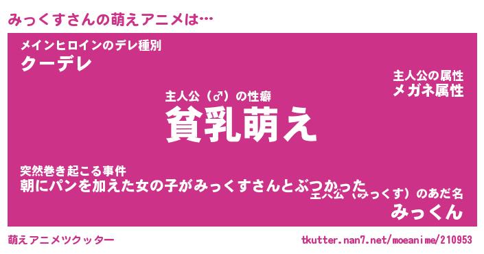 | 男性向けラノベタイトル風あだ名 | 『みっくすの憂鬱』 |