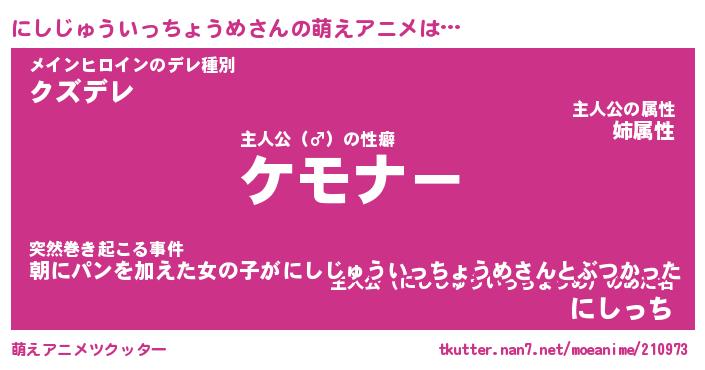 | 2回繰り返すあだ名 | 『にしにし』『ににしし』『いらいら』 |