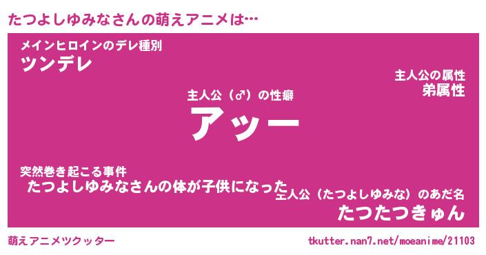 | 女子向けラノベタイトル風あだ名 | 『誰かこのたつよしゆみなを説明してください! ~契約から始まるウェディング~』 |