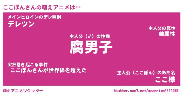 | 男性向けラノベタイトル風あだ名 | 『ココポンアートオンライン』 |