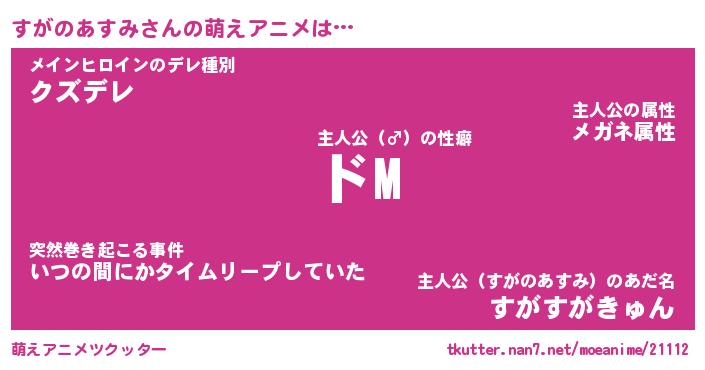 | 男性向けラノベタイトル風あだ名 | 『すがのあすみの憂鬱』 |